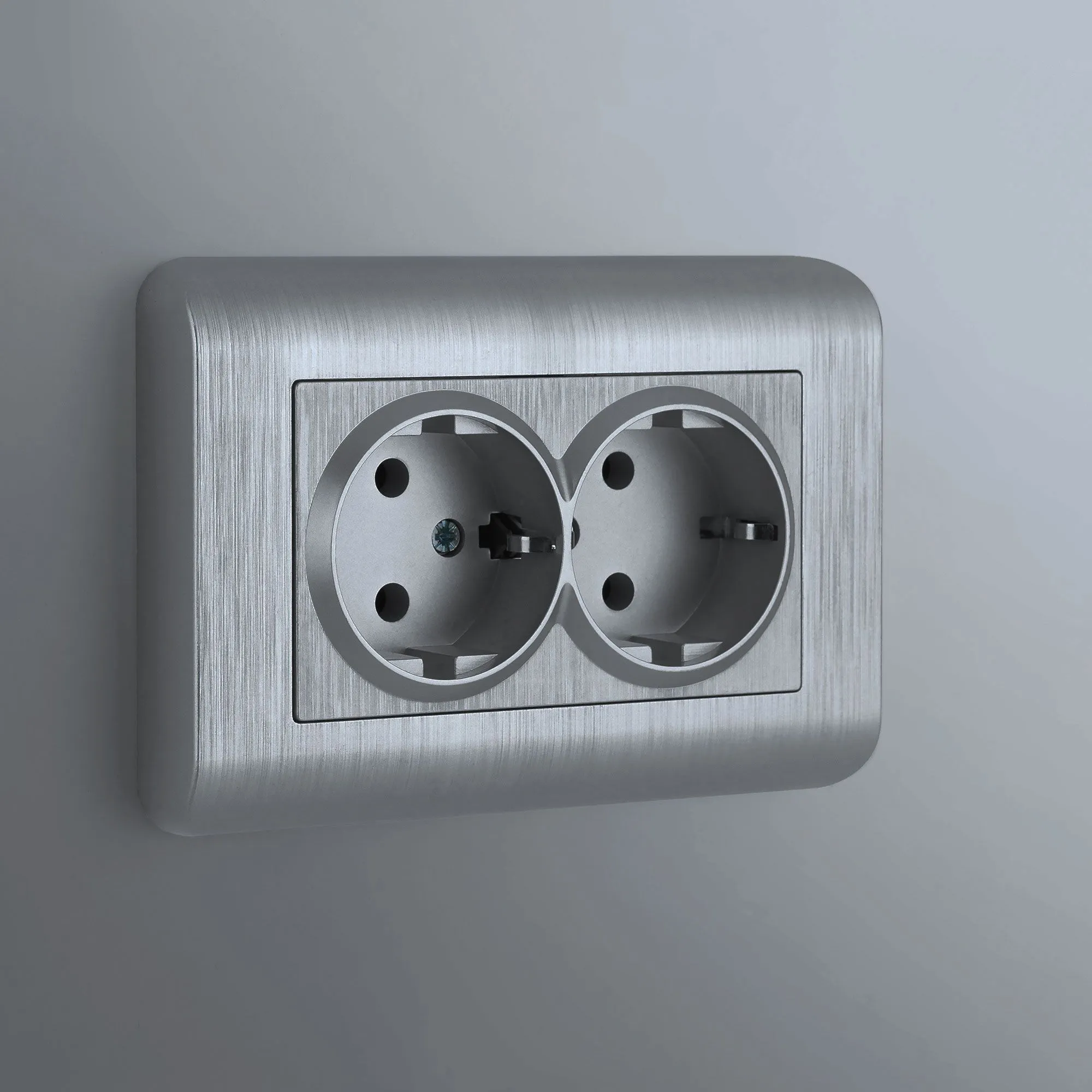 Лицевая панель выполнена из термостойкого поликарбоната — материала, устойчивого к нагреву, ударам и выцветанию. Благодаря лаконичному дизайну и серебряному цвету, розетка гармонично вписывается в любой интерьер.