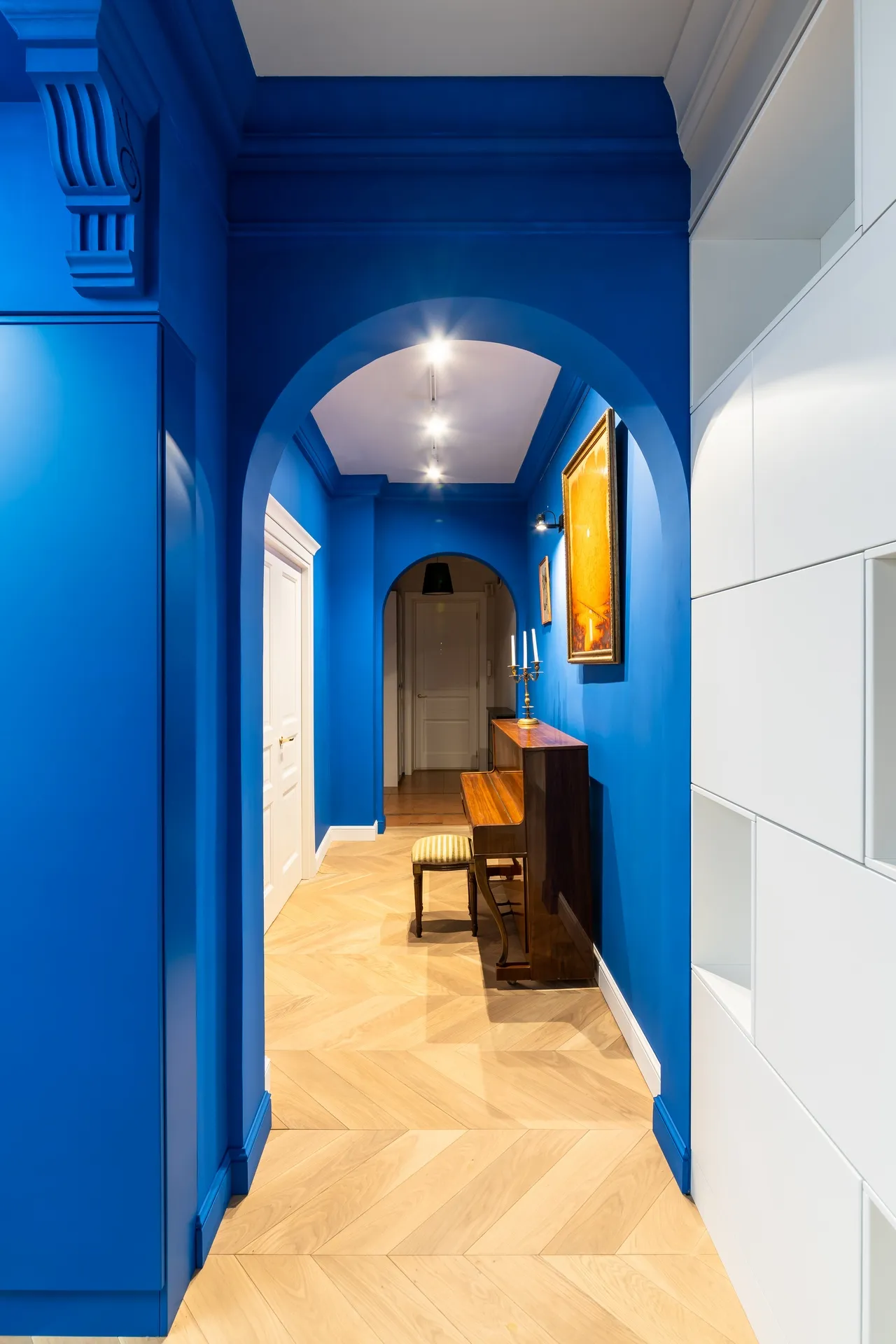 Для оформления коридора были выбраны трековые светильники Splay от Elektrostandard™. Они не только обеспечивают дополнительное освещение, но и организуют световое зонирование пространства, подсвечивая рабочие зоны . Эти светильники можно легко поворачивать, меняя направление светового потока, что делает их невероятно функциональными .